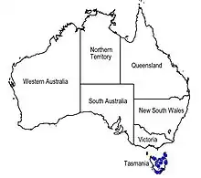 - 1 2 3 4 5 6 7 8 Curtis, Winifred M. (1981). The Student's Flora of Tasmania: Part 3. Tasmania: T. J. Hughes. pp. 554–555.