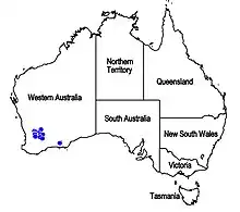 | Known distribution of Westringia discipulorum (in blue) | |