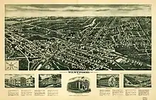 Lincoln High School was constructed around the turn of the 20th century, which also saw the introduction of electricity, telephones, and automobiles to the town. Underwood & Underwood Stereoscope Company opened a plant during the first decades of the 20th century, and many congregations established their first chapels, which were replaced in later years as the congregations grew in numbers and wealth.[35] Following a typical pattern of development throughout the 20th century, the results are a mature railroad suburb almost covered with housing units, commercial, municipal and ecclesiastical buildings. The borough still retains the open space of the triangular park at its center.[33]