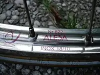 The Westwood rim style of cycle rim used on bicycles was one of the original steel rim designs, developed during or before 1891 by Frederick Westwood of Birmingham.[1] Bowden brakes and cables designed for use with this rim were introduced in 1896.[2] Westwood rims have also been found ideal for use with drum brakes. They were last used on the roadster cycles found in Britain up to the 1980s and still common in South and East Asia and Africa and becoming common once again in Europe. Westwood rims have rounded sides, so they are not suitable for use with caliper brakes.[3] Westwood rims features a wide single-wall cross section, the inside circumference of the rim has a contoured section shape to aid with strength. Today Westwood profile rims found in the West are mostly used in drum brake system roadsters and, to a lesser degree, in bicycles with coaster brake systems.
