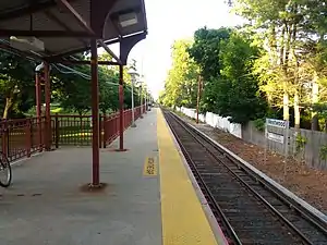 Westwood is a station on the Long Island Rail Road's West Hempstead Branch serving the villages of Malverne and Lynbrook, New York. The station platform is located on Foster Avenue in Malverne, with parking facilities on both the Malverne (Foster Avenue at Motley Street) and Lynbrook (Whitehall Street at Whittier Street) sides of the tracks. It has no station building other than a pair of open shelters, the larger one on the Malverne side of the tracks. It also features a gated at-grade pedestrian crossing,[3] one of only a few stations on the Long Island Rail Road to feature such crossings.