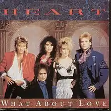 "What About Love" is a song originally recorded by Canadian rock band Toronto in 1982. It was later recorded by American rock band Heart in 1985 and was released as the first single from the band's self-titled album, Heart. The band's "comeback" single, it was the first Heart track to reach the top 40 in three years, and their first top 10 hit in five. The song was also their first hit single on their new record label, Capitol Records. Grace Slick and Mickey Thomas, co-lead vocalists of Starship at the time, provide additional background vocals on the song.