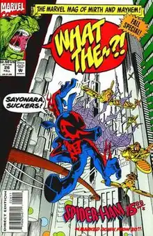 What The--?! is a Marvel Comics comic book series self-parodying the Marvel Universe, similar in vein to the 1960s series Not Brand Echh. It was billed as "The Marvel mag of mirth and mayhem!" The series ran for 26 issues, from August 1988 through Winter 1993, with issue #26 being a Fall Special. It typically contained a series of short stories with comedic takes on Marvel heroes and villains, such as having Spider-Ham substitute for Spider-Man.