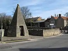 The village lock-up, built in 1834, is a stone building in the shape of a hexagonal pyramid,[9] near the edge of the former quarry. It has a heavy padlocked door and the floor space is about 6 feet (1.8 m) square with a headroom of about 8 feet (2.4 m). In the 19th century it was used to lock up drunks overnight before sending them to the Oxford court. More recently it has been opened every May Day. For a small charge visitors can be locked up for five minutes or so, and given a certificate to prove it.