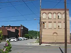 Wheeling Warehouse Historic District is a national historic district located at Wheeling, Ohio County, West Virginia. The district includes 20 contributing buildings and 11 contributing structures. They are warehouses and commercial style buildings and structures between Main Street and the Ohio River. All of the buildings date to the late-19th and early-20th century. The warehouses are mostly two- and three-story masonry buildings. The two-story commercial buildings have storefronts on the first floor and residential units above. Notable buildings and structures include the Pump Store (1933), Wheeling Stamping Plant (1932), Allied Plate Glass (c. 1920), Warwick China (c. 1887), Boury Warehouse (c. 1894), Ott-Heiskell Company (c. 1871), Edward Wagner Wholesale Grocers building (1915), the Moderne style former Greyhound Bus Station, and Main Street Bridge (1891).[2]