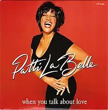 "When You Talk About Love" is a song recorded by American singer and actress Patti LaBelle. It was written by Ann Nesby, James Harris III, Terry Lewis, and James "Big Jim" Wright for her thirteenth studio album, Flame (1997). Production was helmed by Harris and Lewis, with Wright credited as co-producer. Released as the album's lead single, it became one of the LaBelle's most popular hit singles in the 1990s, reaching number 56 on the US Billboard Hot 100 and number 12 on the Billboard Hot R&B/Hip-Hop Songs chart.[1] A dance remix of the song helped to bring the song to number-one on the Billboard Hot Dance Club Songs chart, making it the fourth number-one dance single in LaBelle's career.[2] The accompanying music video featured LaBelle playing a teacher giving a "class" about love.