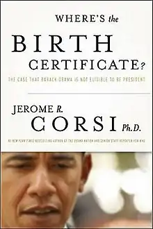Where's the Birth Certificate?: The Case That Barack Obama Is Not Eligible to Be President is a book by Jerome Corsi which promotes the false claim that then U.S. president Barack Obama was not a natural-born citizen of the United States and was thus constitutionally unqualified to hold the office. The book was released on May 17, 2011, and reached No. 6 on the New York Times list of best-selling hardcover non-fiction books. It has been publicized in politically conservative venues.