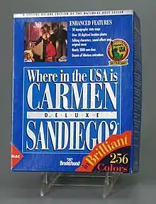 Where in the U.S.A. Is Carmen Sandiego? Deluxe is a video game developed as a remake of the 1986 title Where in the U.S.A. Is Carmen Sandiego?. It is sometimes considered Version 2.0 alongside World and Space. CD-ROM versions for DOS and Macintosh were released in 1992, and a Windows version was released in 1994. The game featured additional animation and a reworked interface from the 1985 version.
