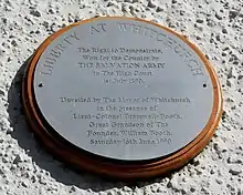 Towards the end of the 19th century, the Salvation Army and its open-air services were the dominant talking point. They maintained that they had a right to hold these services but were prosecuted for obstructing the highways and causing a disturbance. The conviction in 1889 of one group, and their subsequent treatment by the authorities, led to demonstrations. In October 1889, 1000 Salvationists demonstrated in the Town Square at Whitchurch. They were charged with riot, unlawful assembly and rout, and the Salvationists applied for the case to be heard in the High Court of Justice. The court found in their favour and set down laws granting the public the right to hold orderly public demonstrations.[7]