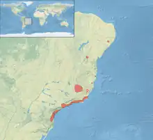 The white-necked hawk is found discontinuously in southeastern Brazil from Paraíba south to Paraná state; it might previously have occurred further south in Santa Catarina state. It mostly inhabits dense primary Atlantic Forest but has been recorded in secondary forest. In elevation it generally ranges from sea level to at least 900 m (3,000 ft) and locally to 1,300 m (4,300 ft) in Minas Gerais.[4]