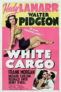 White Cargo is a 1942 American drama film starring Hedy Lamarr and Walter Pidgeon, and directed by Richard Thorpe. Released by Metro-Goldwyn-Mayer, it is based on the 1923 London and Broadway hit play by Leon Gordon, which was in turn adapted from the 1912 novel Hell's Playground by Ida Vera Simonton. The play had already been made into a British part-talkie, also titled White Cargo, with Maurice Evans in 1930. The 1942 film, unlike the play, begins in what was then the present-day, before unfolding in flashback.