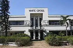 The services of architect Pablo Antonio, who was later recognized as National Artist for Architecture, was obtained to design White Cross, which was aimed to be a fresh-air shelter for the children of TB patients. The building was an Art Deco design with its façade shaped like a large white cross. The bas-relief of children at play that was designed by Italian sculptor Francesco Monti softened the linear and sharp structure of the façade.[7]