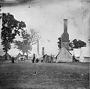 During the Peninsula Campaign, Frederick Law Olmsted, designer of New York City's Central Park among his many accomplishments, served as Executive Secretary of the U.S. Sanitary Commission, a precursor to the Red Cross in Washington D.C. which tended to the Union wounded during the Civil War. Olmsted headed the medical effort for the sick and wounded at White House Landing until McClellan abandoned it as he retreated with his troops during the Seven Days Battles and shifted his base to Harrison's Landing on the James River. The plantation house of White House Plantation was burned by retreating Union troops.[12] This was not the original White House Mansion. The original White House Mansion built by Col. John Lightfoot III had been removed to "make way for the structure which stood on the same site and burned on June 27, 1862".[1]