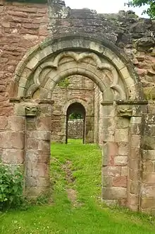 ![]() Romanesque arch at White Ladies Priory | |