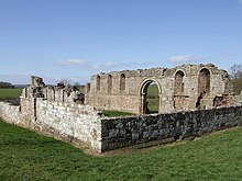 The origins and exact date of foundation of the priory are not known: the latter part of the 12th century is generally accepted as the period of establishment.[2] The surviving ruins show work typical of the late 12th century, and the first documentary evidence dates from 1186 or earlier. In it, Emma, daughter of Reynold of Pulverbatch, in the process of giving land to Haughmond Abbey near Shrewsbury, mentions that she has already granted a virgate of land in Beobridge to the white nuns of Brewood.[3] The publication of this information by the important Shropshire historian Robert William Eyton in 1856 directly contradicted his own conviction, published only a year earlier, of a date in the reigns of Richard I of England or John,[4] as well as casting into doubt older traditions linking the priory with Archbishop Hubert Walter.[5] Eyton thought the priory a Cistercian house, which is now known to be incorrect, but his documentary research still gives the earliest known date by which it must have been founded.