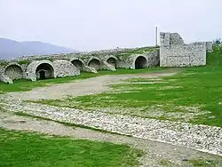 The White Mosque (Albanian: Xhamia e Bardhë or Ak Mesxhid), also known as Sultan Bayezid II. Mosque, is a ruined mosque in Berat Castle, Berat, Albania. From the small, roughly square mosque there are still about a meter high foundation walls and the base of the minaret, a little over two meters high. It was built with white limestone in 1417, and was destroyed sometime in the 19th century after a local uprising against the Ottoman Empire's Tanzimat reforms.