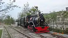 Apart from the Hangzhou Railway Museum and the Sent-down Youth Memorial,[11] the park preserved the old railway tracks and cars of the Jianggan-Gongshu Railway along with the Zhakou Railway station.[18] The railway tracks were transformed into pedestrian paths.[15] The park preserves two steam locomotives: one for display was transformed into a restaurant and the other running sightseeing train service within the park,[18] which allows visitors to experience a five-minute ride on another steam locomotive.[21][15] A gantry crane of the railway station was transformed into a cafe, where visitors can have a sight of the Qiantang River, the Liuhe Pagoda, and the White Pagoda.[15][25]
