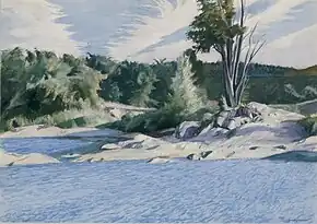 White River at Sharon is a 1937 watercolor painting by the American Realist artist Edward Hopper. It was painted in September 1937 while Hopper and his wife were visiting friends on their farm in Sharon, Vermont. It is held in the Smithsonian American Art Museum, in Washington, D.C..[1]