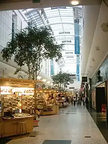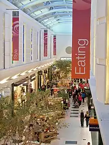 The White Rose Centre is a shopping centre in the Beeston area of Leeds, West Yorkshire, England.[1][2] It spans two floors and is near the M621 motorway. It takes its name from the White Rose of York, the traditional symbol of Yorkshire. Most shops are situated on the Ground Floor. The Upper Level mezzanine and ‘The Village’ outdoor expansion houses one of two food courts as well some retail outlets, a Cineworld 11-screen cinema, a Starbucks and an al fresco dining terrace boasting new tenants Wagamama, Prezzo, TGI Fridays and Five Guys among others. It also houses an outdoor children’s play area. Although the centre is smaller than other out-of-town shopping centres, it has attracted large retailers such as Next, JD Sports, Zara, River Island and Marks and Spencer.