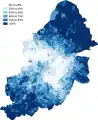 2011 (87.17%)Less than 45%45 - 60%60 - 75%75 - 85%85 - 90%90 - 95%More than 95%