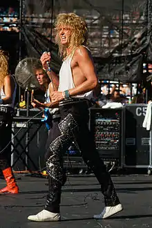 David Coverdale performing with Whitesnake in 1987, sporting a more contemporary glam metal inspired look