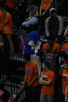 Flip the Dolphin mascot at the Chicago Public High School League championship basketball game, 2014.