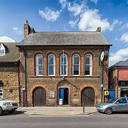 In 1857, the building was remodelled to a design by Richard Reynolds Rowe of Cambridge in the Italianate style; the work was carried out by Messrs Bennett & Sons at a cost of £257.[2] The new design was more decorative with faience tiles in the tympanum above the doorway and an arcade of five round-headed windows on the first floor.[2] Internally, the principal rooms were the fire station and the lock-up on the ground floor and the assembly room on the first floor.[1] The assembly room, which was equipped with a horseshoe-shaped table, was used as a courtroom for petty sessions.[3][4]