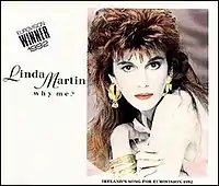 "Why Me?" is a 1992 song by Northern-Irish singer Linda Martin. It was the winner of the Eurovision Song Contest 1992, performed for Ireland by Martin. The result was also notable as the song was composed by Johnny Logan, who had previously won the contest with "What's Another Year?" and the self-composed "Hold Me Now" (in 1980 and 1987 respectively). Logan is, to date, the only person to win the contest with a song composed for him, win the contest with his own song and then compose another winner. Furthermore, this was the second time Martin performed a song by Logan at the contest, after "Terminal 3" in 1984.