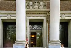 The Harry Elkins Widener Memorial Library, housing some 3.5 million books in its "vast and cavernous"[2] stacks, is the center­piece of the Harvard College Libraries (the libraries of Harvard's Faculty of Arts and Sciences) and, more broadly, of the entire Harvard Library system.[3] It honors 1907 Harvard College graduate and book collector Harry Elkins Widener, and was built by his mother Eleanor Elkins Widener after his death in the sinking of the RMS Titanic in 1912.