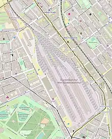 The Wien Nordwestbahnhof (English: Vienna Northwest Railway Station), abbreviated as Wien NWBH, is a goods station in transformation to a city development area in Brigittenau district of Vienna, Austria. Passenger transport ended in 1959. It serves as the southern terminus of the Austrian Northwestern Railway. The northwestern terminus of the line was Prague Těšnov station till 1972.[1] Freight transport is in the phase of termination. By 2025, a new district will be built on the site. An interim use phase will begin in 2018.