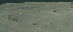 Oblique view of the young crater Wiener F, from Lunar Orbiter 5