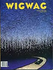 Founded by Alexander "Lex" Kaplen, who worked at The New Yorker, Wigwag eschewed celebrity coverage in favor of personal and literary writing. A test issue was put on newsstands in the summer of 1988, and the magazine formally debuted in October 1989. The magazine attracted writers such as Peter Matthiessen, Terry McMillan, Garry Wills, Alex Heard, Sousa Jamba and Nancy Franklin, but despite a circulation of 120,000, and despite being financially successful, ceased publication when the Gulf War broke out in 1991 and the economy entered a recession. It published its last issue in February 1991. In its brief lifetime it reached a circulation of close to 200,000 and became a brand name signifying family-feeling and an appreciation of the qualities of non-metropolitan America.