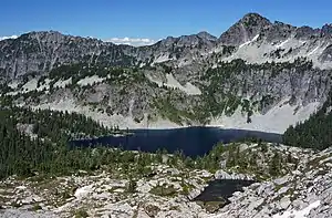 The Alpine Lakes Wilderness features some of the most rugged topography in the Cascade Range with craggy peaks and ridges, deep glacial valleys, and granite walls spotted with over 700 mountain lakes.[5] Geological events occurring many years ago created the diverse topography and drastic elevation changes over the Cascade Range leading to the various climate differences.