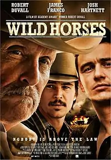Wild Horses is a 2015 American Western crime film written and directed by Robert Duvall. The film stars Robert Duvall, James Franco, Josh Hartnett, Adriana Barraza, Jim Parrack and Luciana Duvall. The film was released on June 5, 2015, by Entertainment One Films.