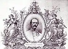 In this function he became the second owner of the Artillery Regiment No. 1 "Kaiser Franz Joseph" in 1866[5] and earned through the armouring of the bridgehead Floridsdorf, the fortified camp near Vienna, as chief of artillery great merits during the war of 1866. Therefore, the emperor promoted him on November 9, 1867 (rank from November 13 of the year), to major general (Feldmarschalleutnant), and in 1871 he appointed Wolfsberg to the owner of the Corps Artillery Regiment No. 4.[6][7] In April 1875, he entrusted him with the command of the fortress of Olmütz, which he headed until his retirement.