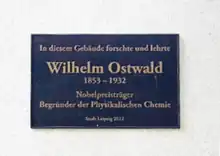 The Wilhelm Ostwald Institute for Physical and Theoretical Chemistry at the University of Leipzig, located at Linnéstraße 2 in Leipzig, is the oldest physical chemistry institute in Germany. It is one of seven institutes of the Faculty of Chemistry and Mineralogy of the University of Leipzig. The institute was ceremoniously inaugurated in 1898 by its first director, Nobel Prize winner Wilhelm Ostwald, and has borne the official name "Wilhelm Ostwald Institute for Physical and Theoretical Chemistry" since 1998.[1]