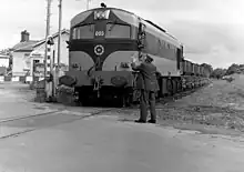 Gypsum train at a level crossing near Wilkinstown in 1976