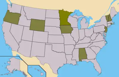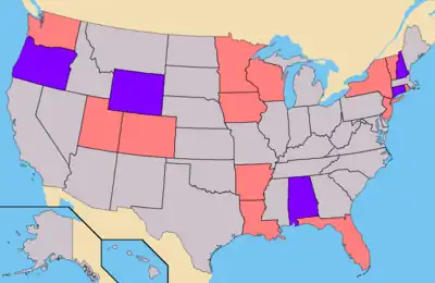 Light Blue – States where A.E. had submitted petitions. (41 Confirmed)