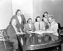 ![]() Washburne (left) with J. Frank Houghton, Donald C. McLaren, Fred C. Petersen, Henry S. Bartholomew and B. E. Shaffer, 1953 | |