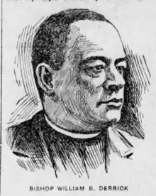 William B. Derrick (July 27, 1843 – April 15, 1913) was an African Methodist Episcopal (AME) bishop and missionary. He worked as a seaman early in his life and served in the Union Navy during the US Civil War. After the war, he joined the AME church and became involved in church leadership and missionary activities. He became a bishop of the church in 1896. He was also involved in Republican politics and civil rights.