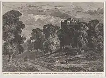 - Turreted Farm in a Wooded Landscape (Watercolour - "The Swan Gallery", Sherborne, Dorset)