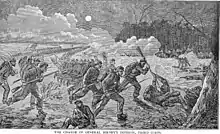 At the outbreak of the Civil War, Birney entered the Union Army on May 22, 1861, as a captain in the 1st New Jersey Infantry Regiment.[1] He first saw combat in the First Battle of Bull Run. Promoted to major of the 4th New Jersey Infantry Regiment, he participated in the battles of Second Bull Run, Chantilly, Fredericksburg, and, as a colonel, Chancellorsville. In 1863–64, he was appointed as one of three superintendents in charge of enlisting colored troops into the Union army, and in that capacity organized seven regiments. He was named Colonel of the 22nd U.S. Colored Troops. On June 9, 1863, he was commissioned as a brigadier general of volunteers, to rank from May 22, 1863, and assigned to Maryland to recruit more black troops.[2][3] In 1864, he marched his regiments to fight in South Carolina as a part of the Department of the South. They fared poorly, but did much better work in campaigns in Florida, including the Battle of Olustee.