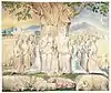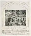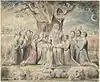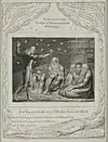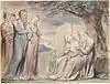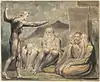 Blake's next illustration was the tempera painting Job and his Daughters (1800), commissioned by Thomas Butts (see gallery below).[6] This has similarities to plate 20 of the engraved illustrations, but it is unclear whether the print was directly based upon it.[7]