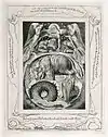 The completed engravings differ from Blake's original watercolours mainly in the complex marginal designs that they employ. These comment upon the text with biblical quotes and paraphrases, and also contain images that reinforce the themes of the main illustrations.
