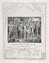 As early as 1785 Blake had sketched several ink studies of an illustration to Job.[3][4] In 1793 Blake engraved a composition based upon these drawings, which he offered for sale in the Prospectus to the Public for twelve shillings.[5] This, alongside an engraving of Ezekiel, are the only extant examples of an intended series of biblical illustrations that were never completed. Blake reworked the Job plate sometime after 1804, but the resulting print was not included in the Illustrations.