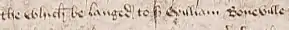 - ↑ In other words, it was rumoured that Bonville ordered the gathering of the largest force of men (a puissaunce[84]) that he could, and that having done so, he brought them (hider[85]) to Westminster with him; from a letter of 19 January 1454 from John Studley to John Paston.[86]