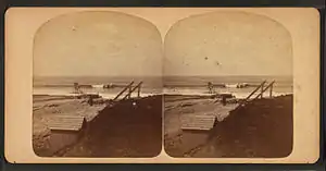 In 1658, Brenton was granted 8,000 acres of land on the Merrimack River,[4] a tract which was called Brenton Farm and later became the town of Litchfield, New Hampshire.[11] In 1670, he was residing in Taunton in the Plymouth Colony.[4] Even though he was living in Taunton, in 1672 he was once again elected governor of the Rhode Island colony, in absentia, but refused to serve.[6] He died sometime after September 25, 1674, when he was involved in a land deed, but before November 13 of that year when his will was proved at Newport, where he died.[1] One source says he eventually became a member of the Quaker church,[12] but this is not supported by Anderson who gives his church affiliation only as the Boston (Puritan) church.[2] He had been a highly useful member of the colony, serving as an office holder or legislator for nearly 40 years.[13] Brenton's Point and Brenton's Reef in Newport are named after him, and Hammersmith Farm, where United States President John F. Kennedy was married to Jacqueline Bouvier, was named for his property in Newport.[14]