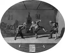 A cartoon from 1783 depicting Buzaglo's establishment for curing the gout by means of physical exercise.