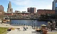Waterplace Park, completed in 1994, and surrounding buildings.