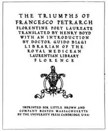 - 1 2 "Collection concerning the publication of The triumphs of Francesco Petrarch ..., 1903-1941". OCLC. Retrieved 17 February 2013.
